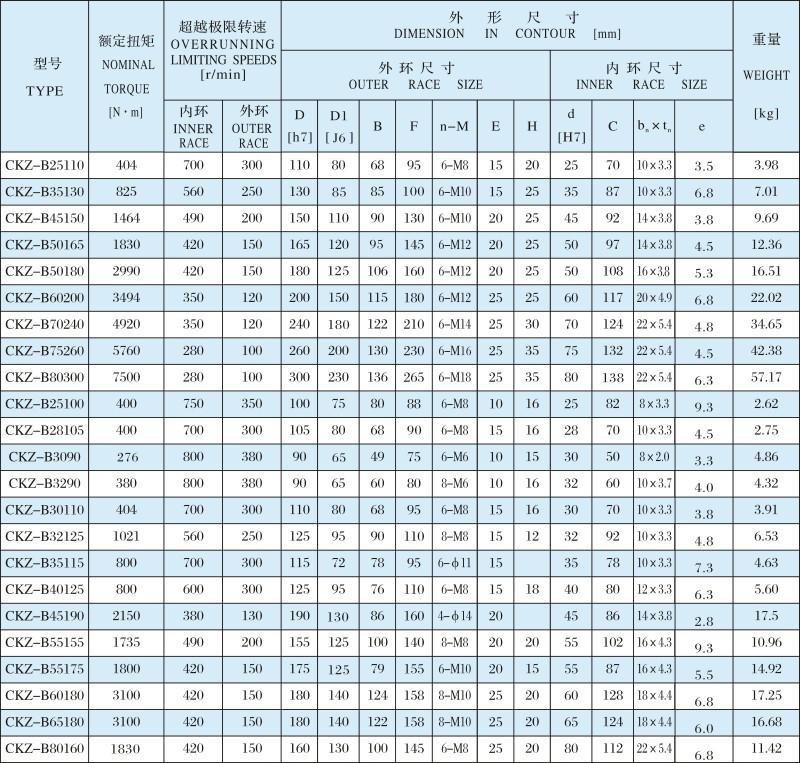 CKZ-B楔塊式單向離合器